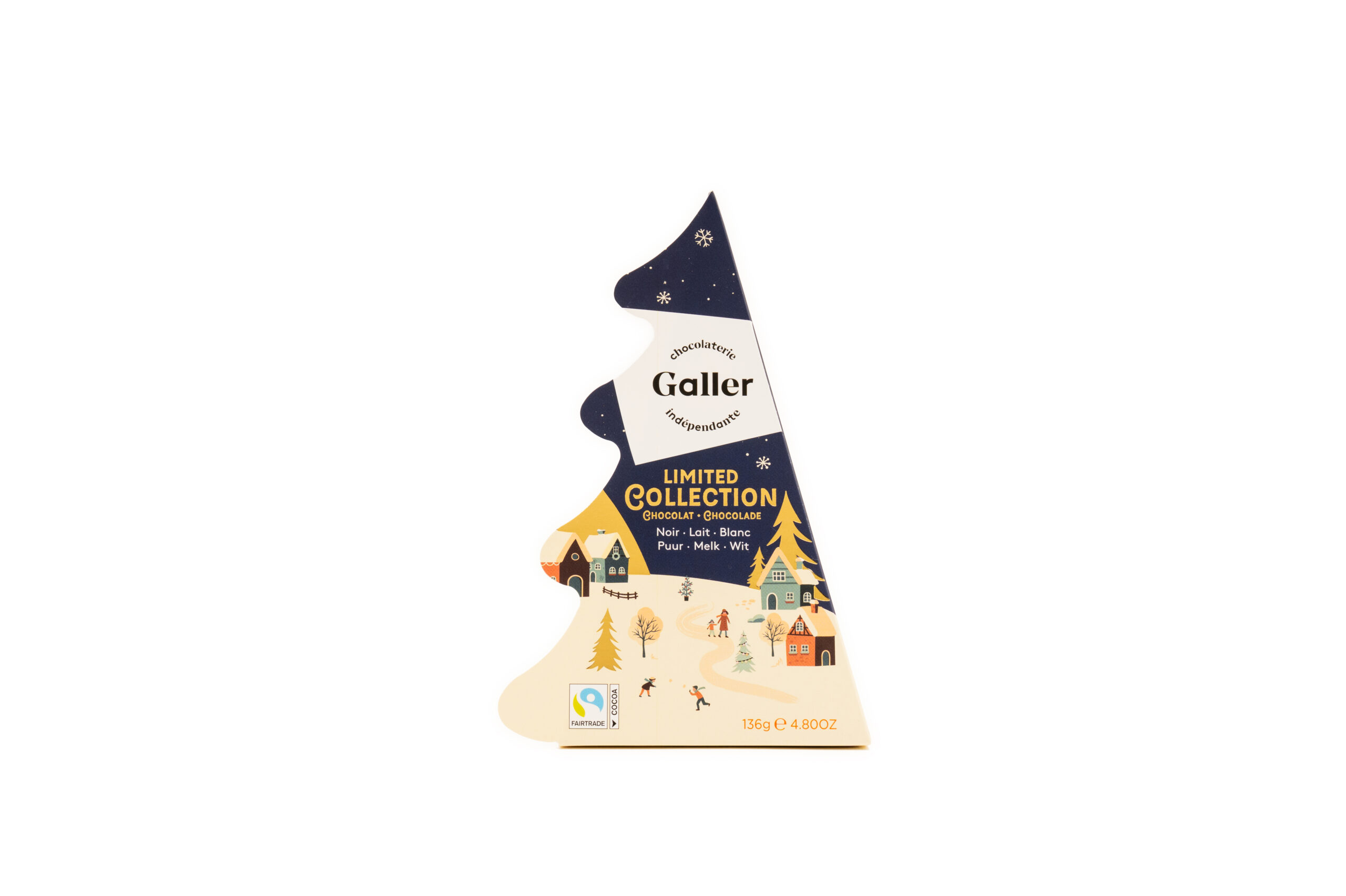 Une boîte en forme de sapin contenant 8 mini bâtons et 8 rawetes.