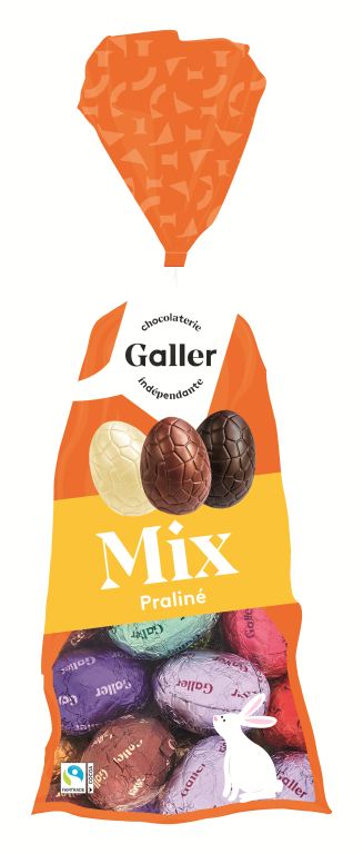 Sachet transparent de petits œufs en chocolat, un délicieux assortiment de 250 gr.